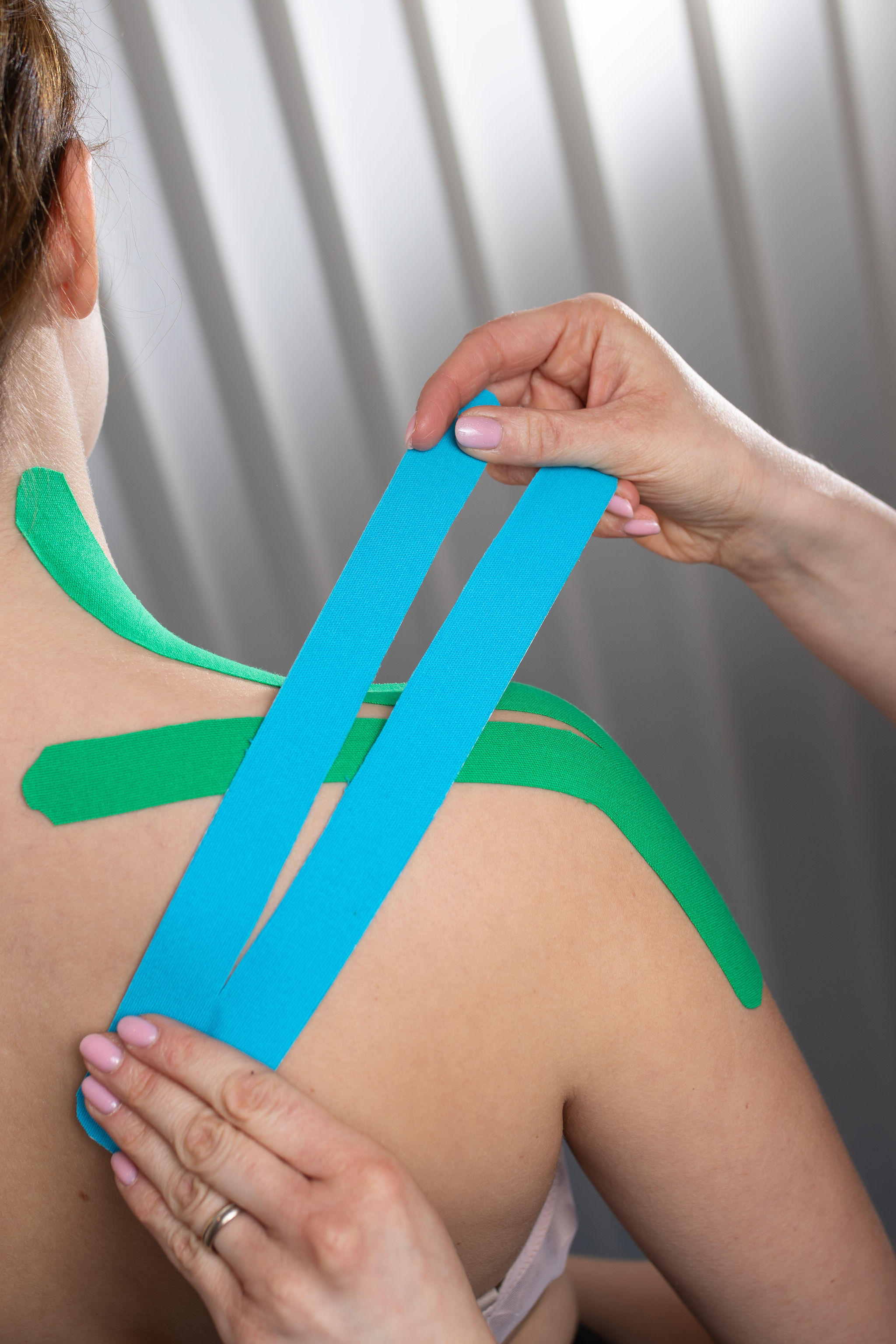 Kinezio tape egy kémiai hatóanyagtól mentes, rugalmas szalag, amely fájdalomcsillapító és gyulladáscsökkentő hatása mellett segítheti az ízület stabilitását, a sérült terület tehermentesítését és a nyirokkeringés javítását.